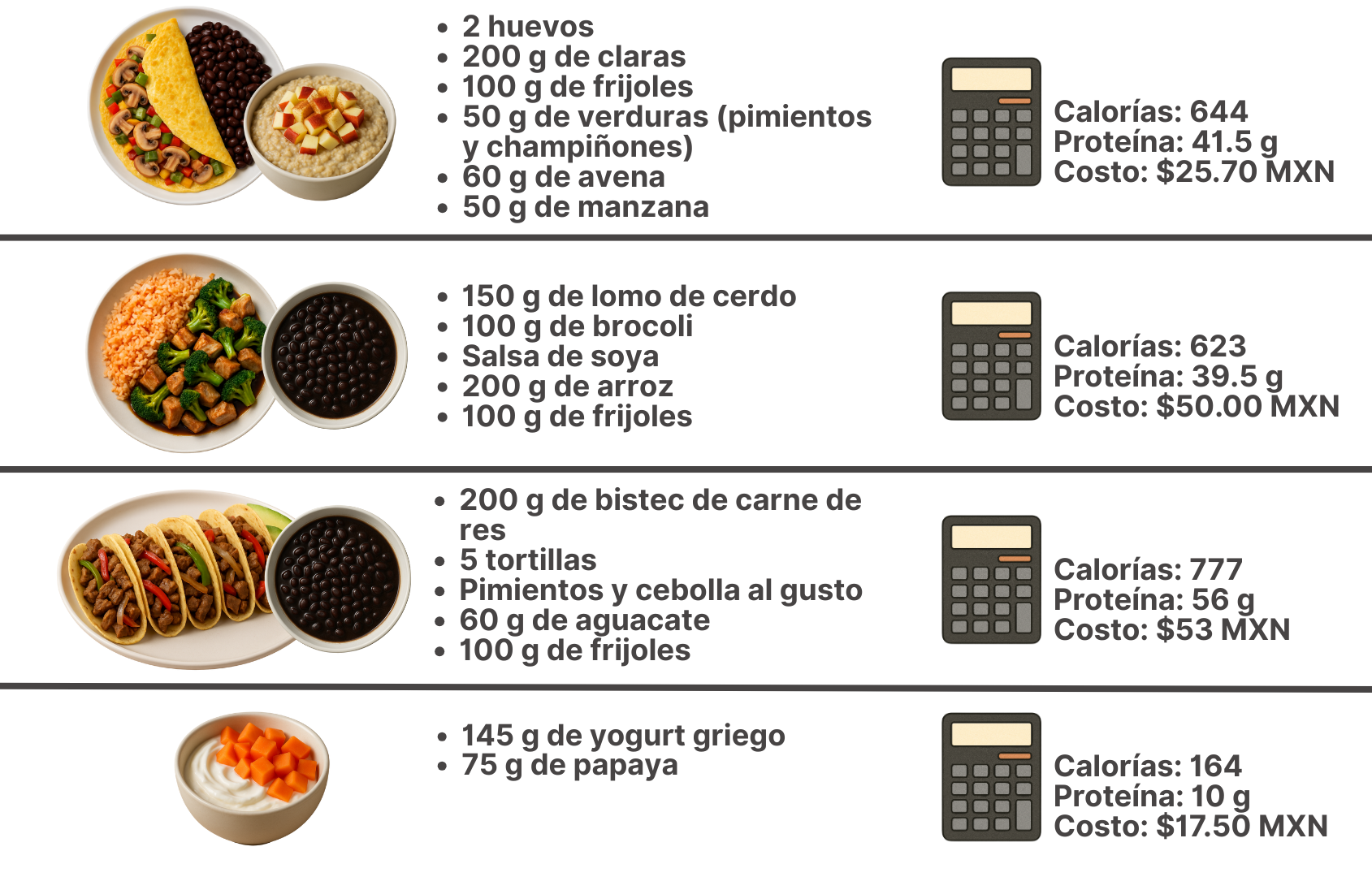 Una vez que tienes tus calorías, divídelas así⬇️: